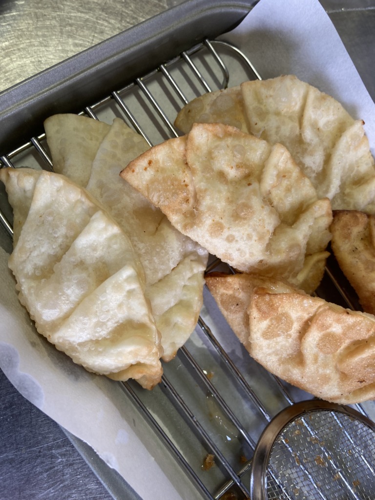 餃子の皮がもちもちしていて、りんごの甘みとシナモンの風味が口の中に広がります!