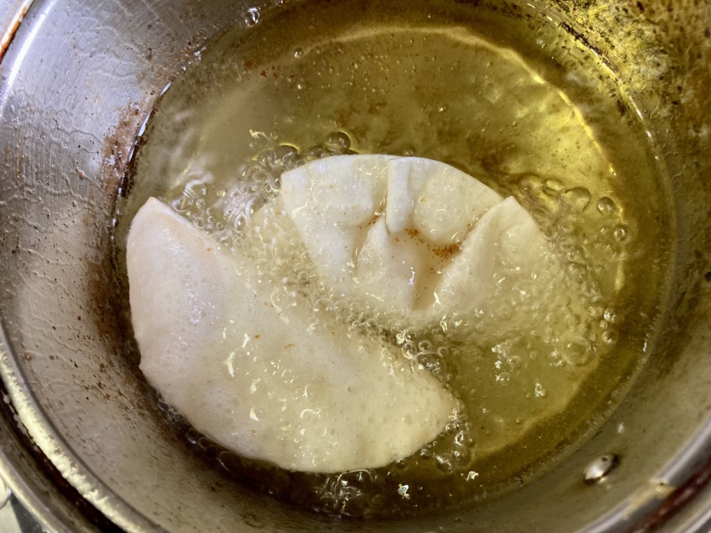 5,油で揚げる。